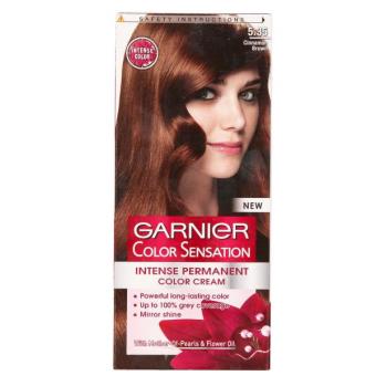تغییر رنگ موها هرچند جزئی میتواند تغییری زیبا و خوشایند در چهرهی شما بهوجود بیاورد البته باید در انتخاب رنگی که استفاده میکنید دقت کنید تا با رنگ پوستتان هماهنگی داشته باشد. کیت رنگ موی برند «گارنیه» (Garnier) حاوی یک تیوپ رنگ به حجم 40 میلیلیتر، یک اکسیدان 60 میلیلیتری، یک کرم نرمکننده که پس از رنگ کردن باید مورداستفاده قرار بگیرد و یک جفت دستکش پلاستیکی برای محاظت از پوست دستها است. رنگ موی گارنیه دارای رنگدانههای قوی و پر رنگ است که رنگ دلخواهتان را بر روی موها ایجاد کرده و اگر موهای سفید داشته باشید گارنیه بهطور کامل آنها را پوششدهی خواهد کرد. رنگ موی گارنیه ظاهری طبیعی بر روی موها ایجاد کرده و منجربه درخشش و زیبایی بیشتر موها خواهد شد. رنگ شمارهی 5.35 از سری «Color Sensation Shade» پایهی قهوهای-شکلاتی متوسط روبه تیره دارد که رنگی مناسب برای افرادی است که به رنگهای گرم و زیبا با پایهی تیره علاقهمند هستند. محصولات گارنیه دارای شماره مجوز بهداشت از سازمان غذا و دارو هستند که کاملاً تاییدشده محسوب میشوند. گارنیه با عصارهی مروارید غنی شده و حاوی روغن گلهای خوشبو است.